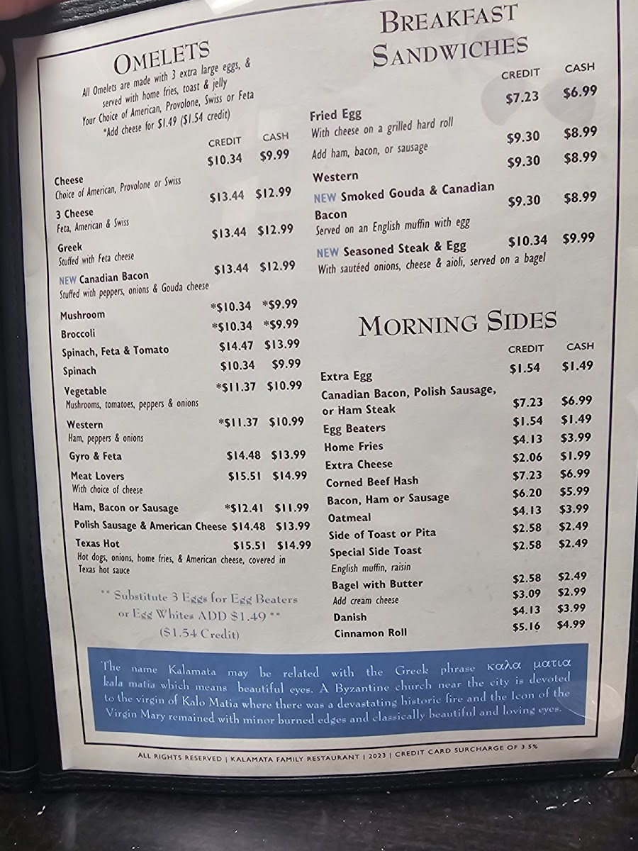 Among the standout items, the Greek fries offer a unique twist that sets them apart from typical fare, while the vibrant Buffalo Chicken Salad and comforting Spinach Salad cater to lighter appetites. Customers rave about the generous portions, making it the perfect spot for sharing with family and friends. My personal favorite, the Cannoli French Toast, is a must-try, receiving rave reviews for its exquisite taste. Kalamata truly embodies a warm, welcoming atmosphere, where every visit feels like a culinary celebration.